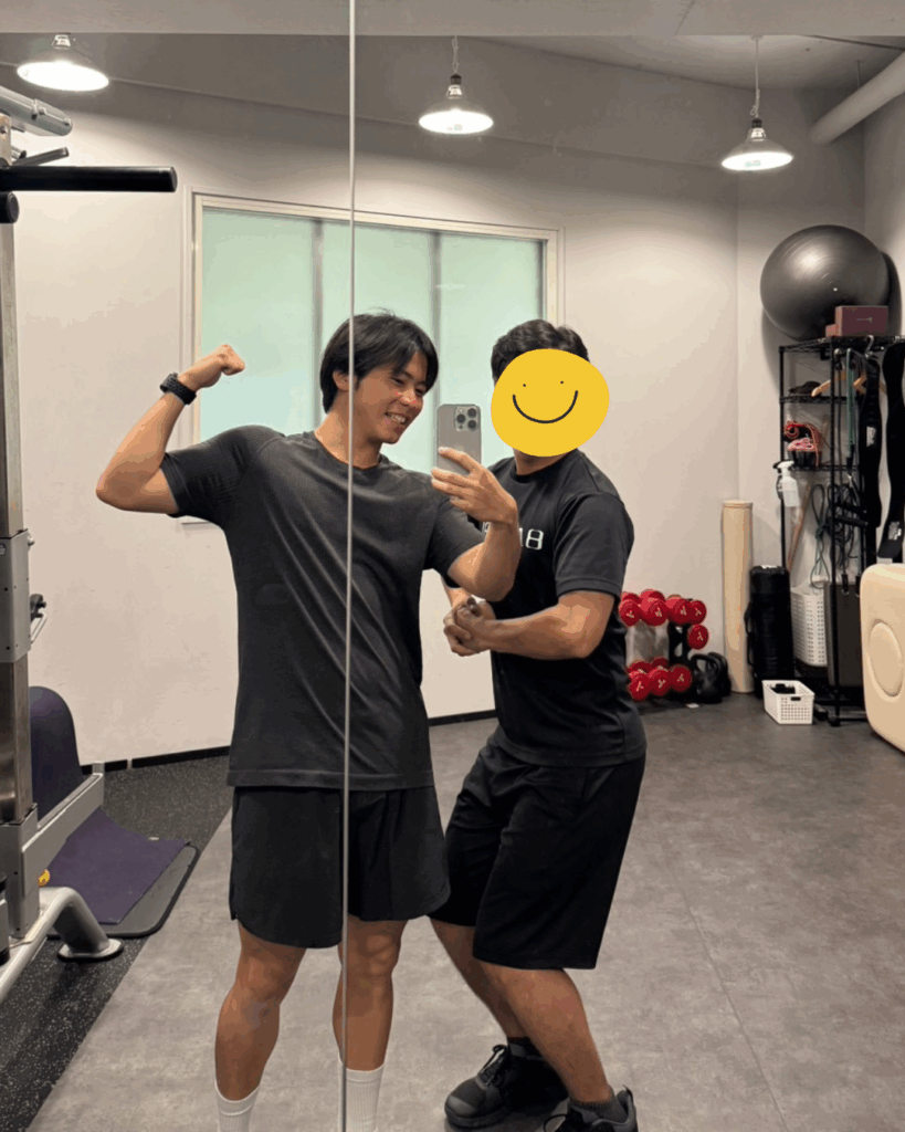 - 指導内容: 筋トレ以外にも姿勢、体幹、バランスの強化を目指すファンクショナルトレーニングを実施。また、疲労回復や肩こり・腰痛の予防のために、セッションにパートナーストレッチを組み込みます。